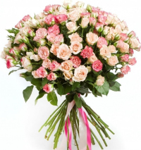 Восхитительный букет из разноцветных кустовых роз - это прекрасный выбор для подарка дорогим и близким вам людям. Этот букет станет центральным украшением любого торжества - он порадует всех своей красотой, изяществом и благоуханием. Так же смело можете дарить его своей любимой, так как розы - это  цветы говорящие о любви.